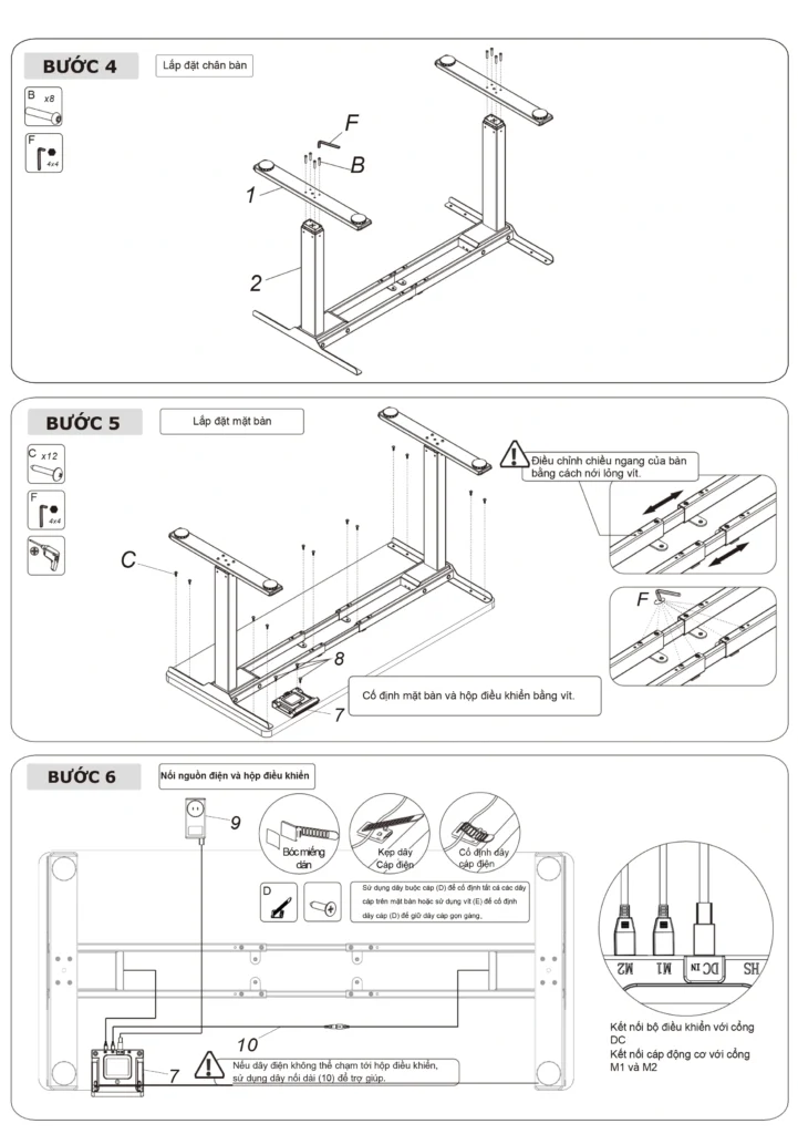 Bộ điều khiển: 5 nút bấm (nâng, hạ, ngồi, đứng, khóa điều khiển)