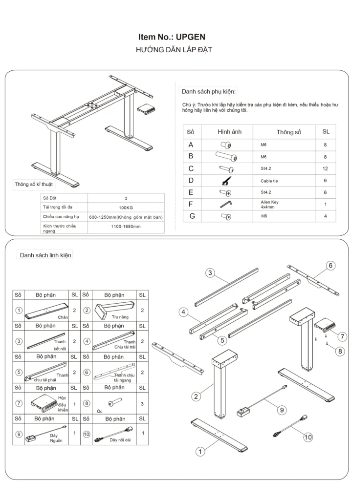 Bộ điều khiển: 5 nút bấm (nâng, hạ, ngồi, đứng, khóa điều khiển)
