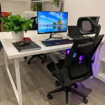+ Mặt bàn hình chữ nhật, dài 1m2, rộng 60cm, phù hợp với màn hình từ 22” tới 29” và rất đẹp với màn hình 27”. Với diện tích này bạn có thể setup được dàn máy tính cùng bộ gaming gear một cách vô cùng tiện lợi.